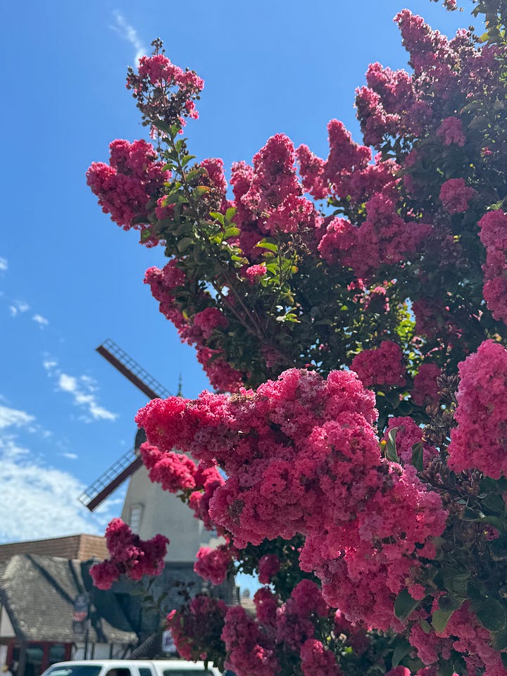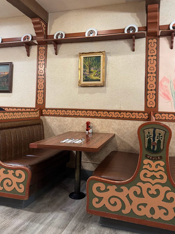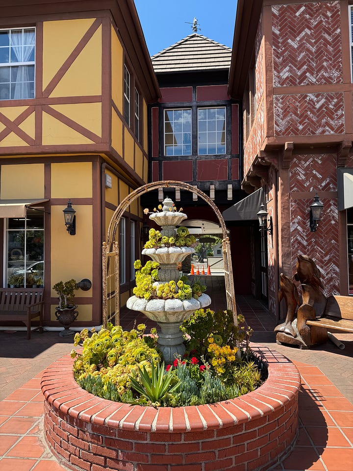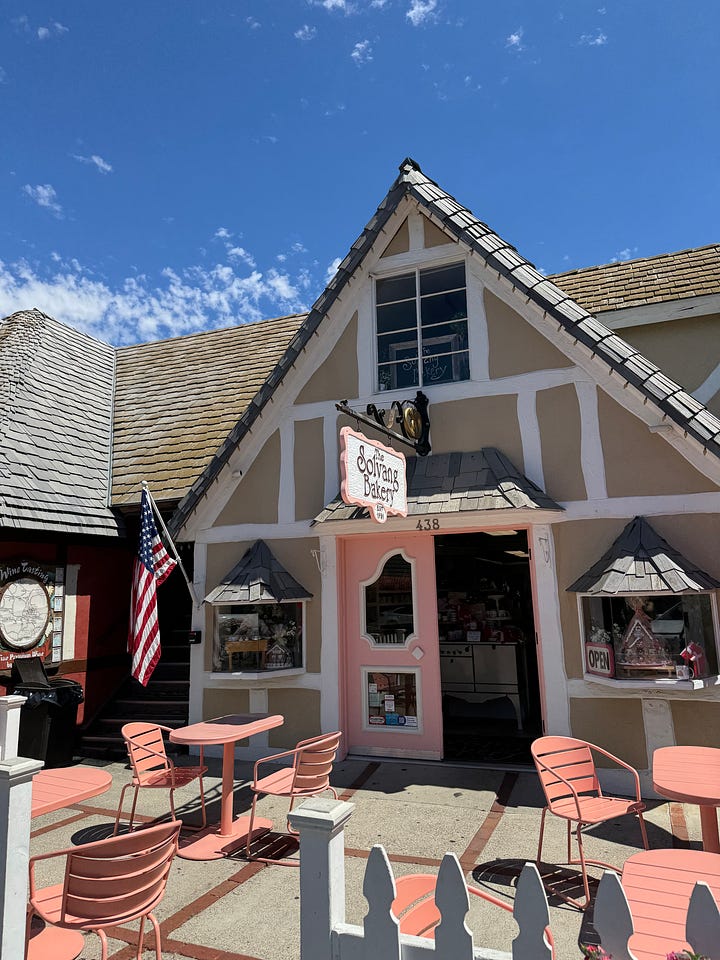 We stopped in Solvang, a bit hangry yet graciously served promptly, and split thin Danish pancakes along with a plate of meatballs, coleslaw, and mashed potatoes. I discovered that his family also once fell in love with this quirky town, a pocket of European architecture in the states.